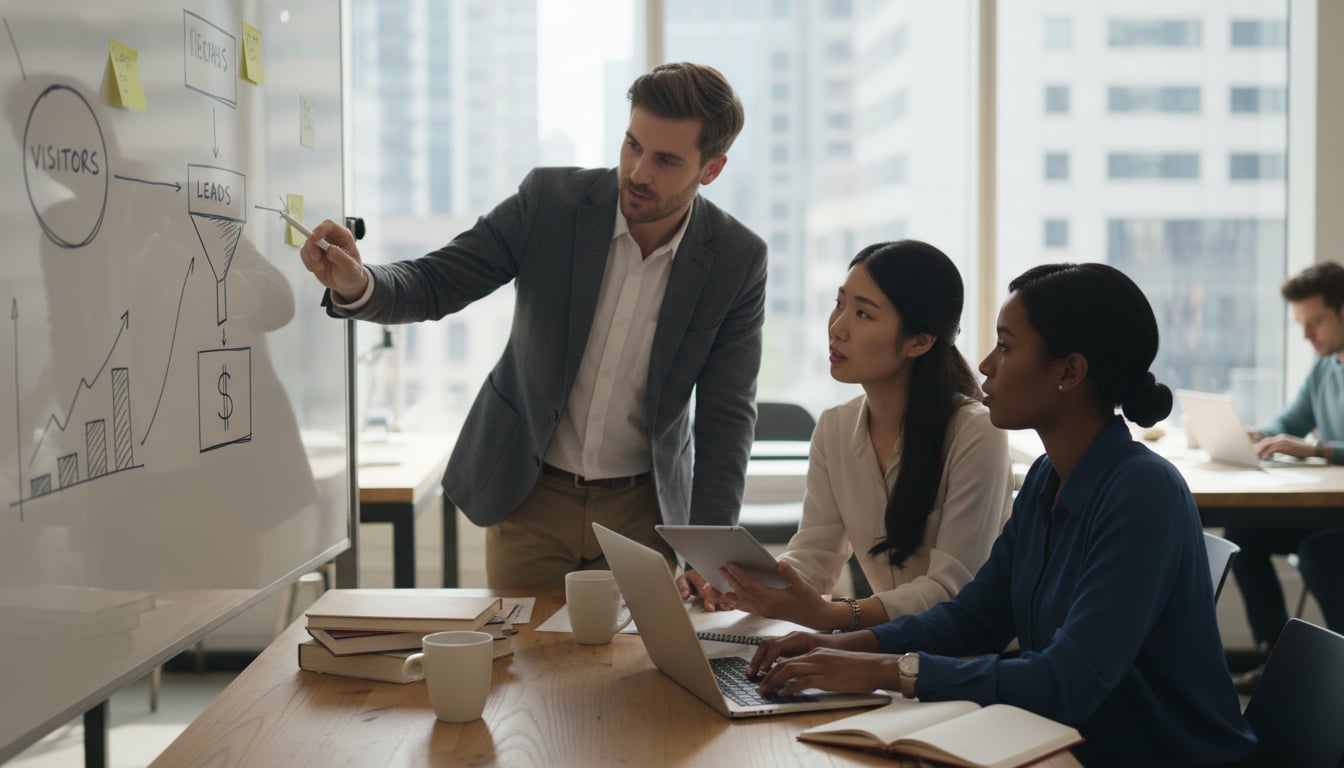 Work the math backward. If you want 10 new customers per month from content alone, at average conversion rates you need roughly 10,000 to 15,000 relevant visitors. That’s why each conversion point matters. Improving any single rate by just a few percentage points compounds dramatically across the entire chain.